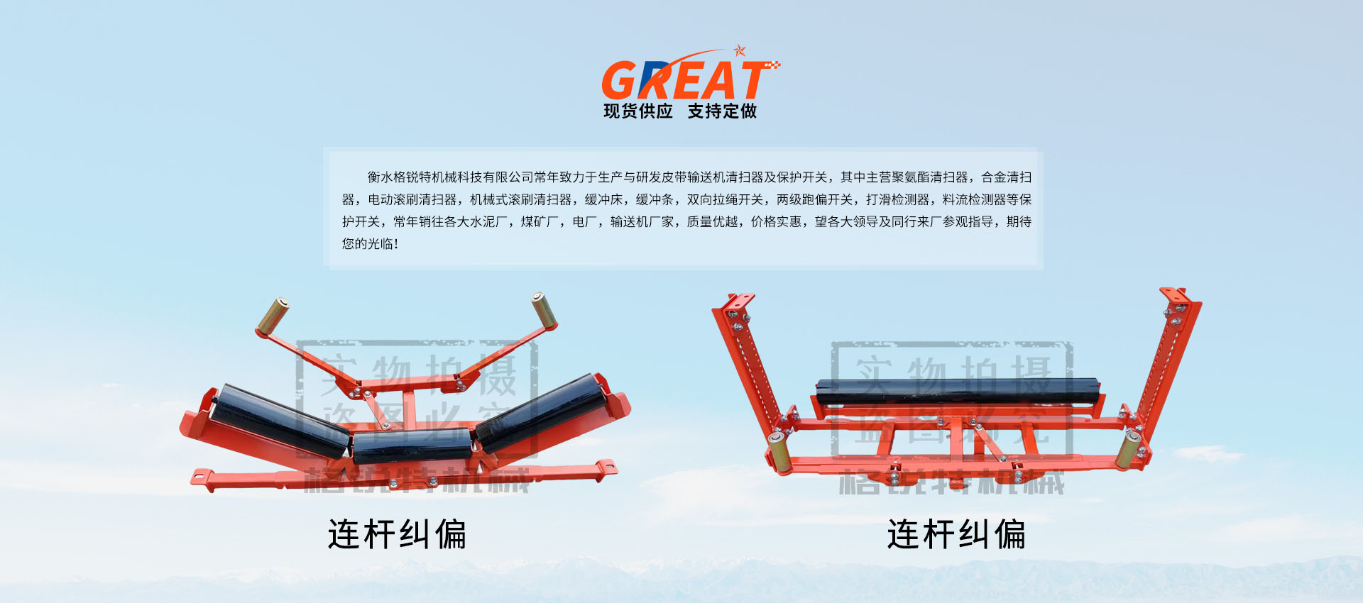 衡水格銳特機(jī)械科技有限公司常年致力于生產(chǎn)與研發(fā)皮帶輸送機(jī)清掃器及保護(hù)開關(guān),其中主營(yíng)聚氨酯清掃器,合金清掃器,電動(dòng)滾刷清掃器,機(jī)械式滾刷清掃器,緩沖床,緩沖條,雙向拉繩開關(guān),兩級(jí)跑偏開關(guān),打滑檢測(cè)器,料流檢測(cè)器等保護(hù)開關(guān),常年銷往各大水泥廠,煤礦廠,電廠,輸送機(jī)廠家,質(zhì)量?jī)?yōu)越,價(jià)格實(shí)惠,望各大領(lǐng)導(dǎo)及同行來廠參觀指導(dǎo),期待您的光臨?。。?/p>